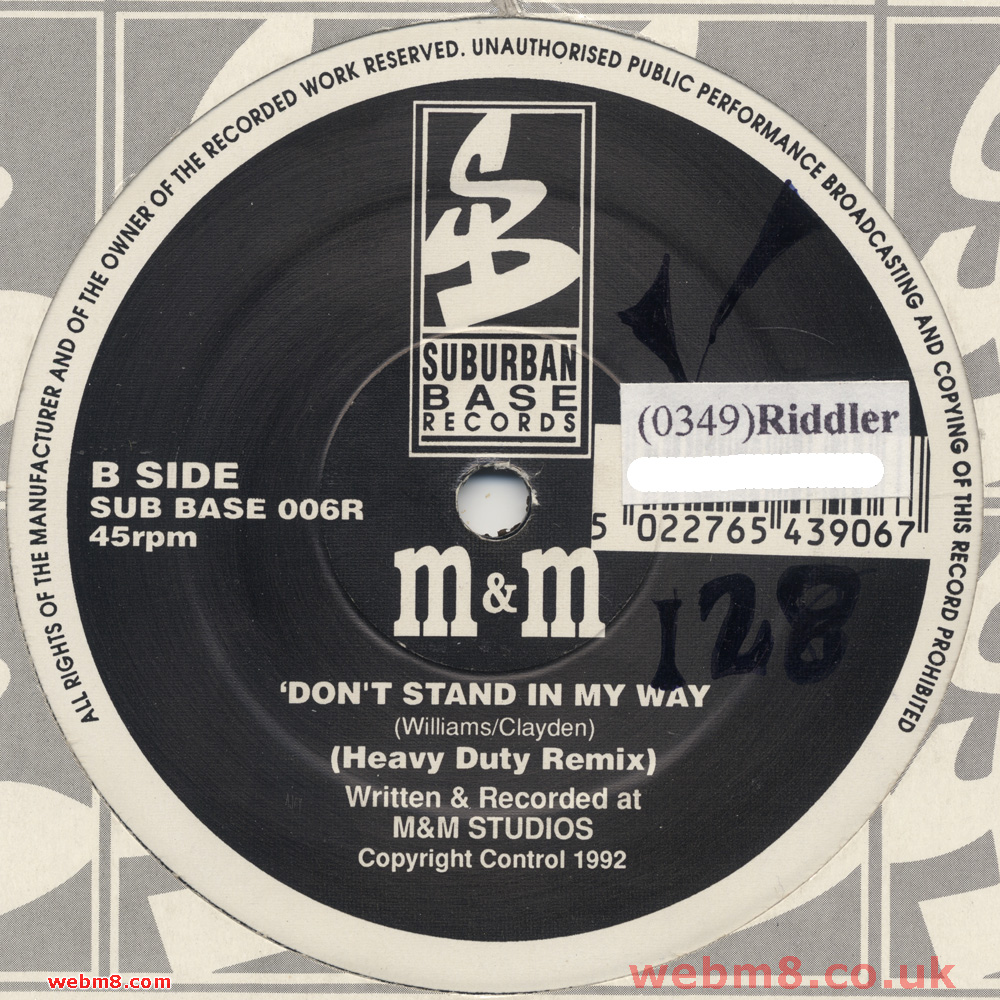 M&M Featuring Rachel Wallace - I Feel This Way / Don't Stand In My Way (Remixes) - Suburban Base Records (0349)