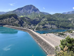 We had a snack in a nice little town before dropping down to damn, great to see "Sky" and "Froome" written on the road, couldn't grab a photo though. Also heard a woodpecker earlier on in the day. The colour of the water was turquoise again, the lake is huge.