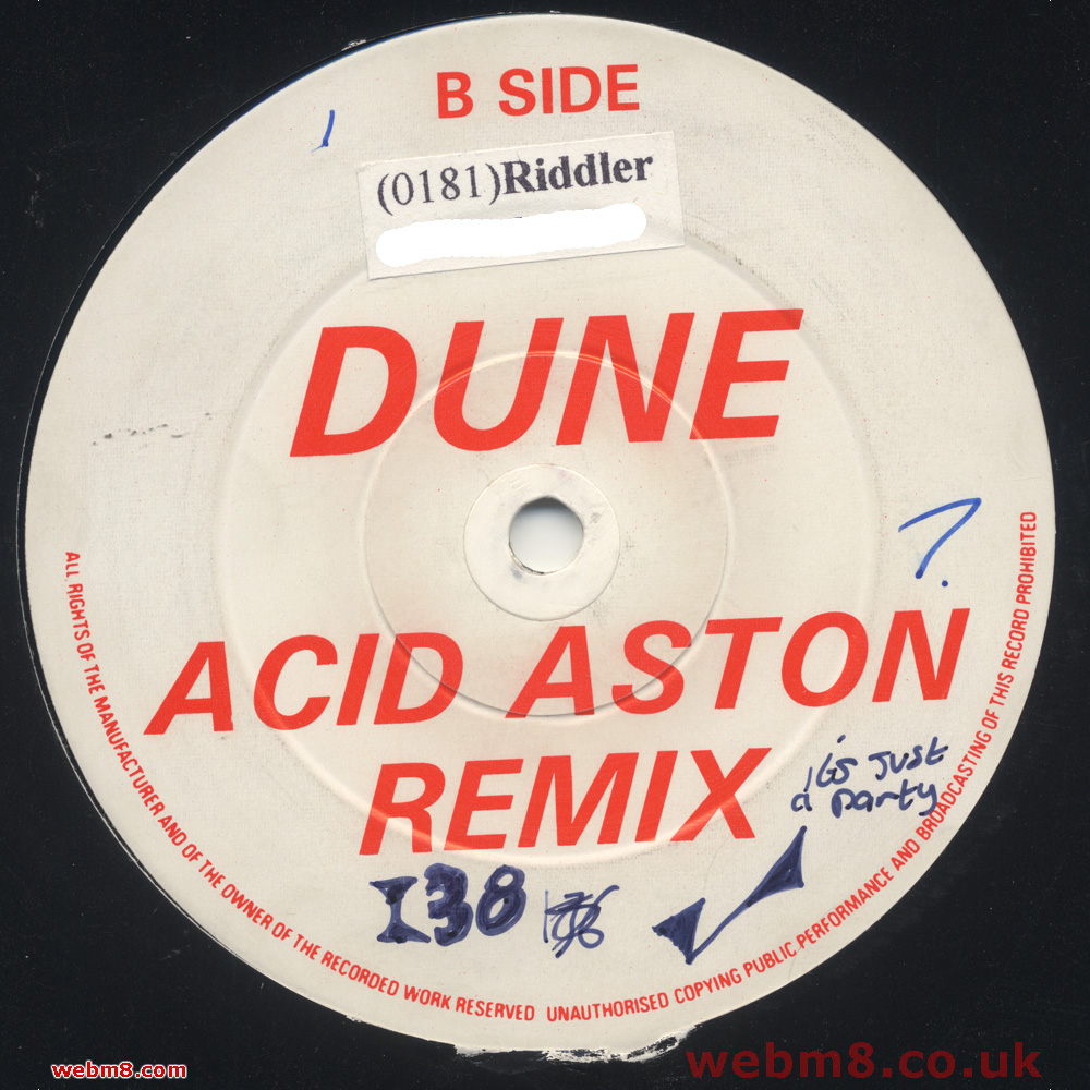 Dune - W.L. (Advance 002) / Dune – Too Much (Remixes) - Advance / Advance Records (0181) Too Much (Remix) / Side 1 (remixes) Code: ADV 002 - Bought: new 31.3.93 - Released: 1991 - Barcode: ?? LINK to Discogs - got to question the release date or my bought date, must have been 1992 as heard it at Perception |